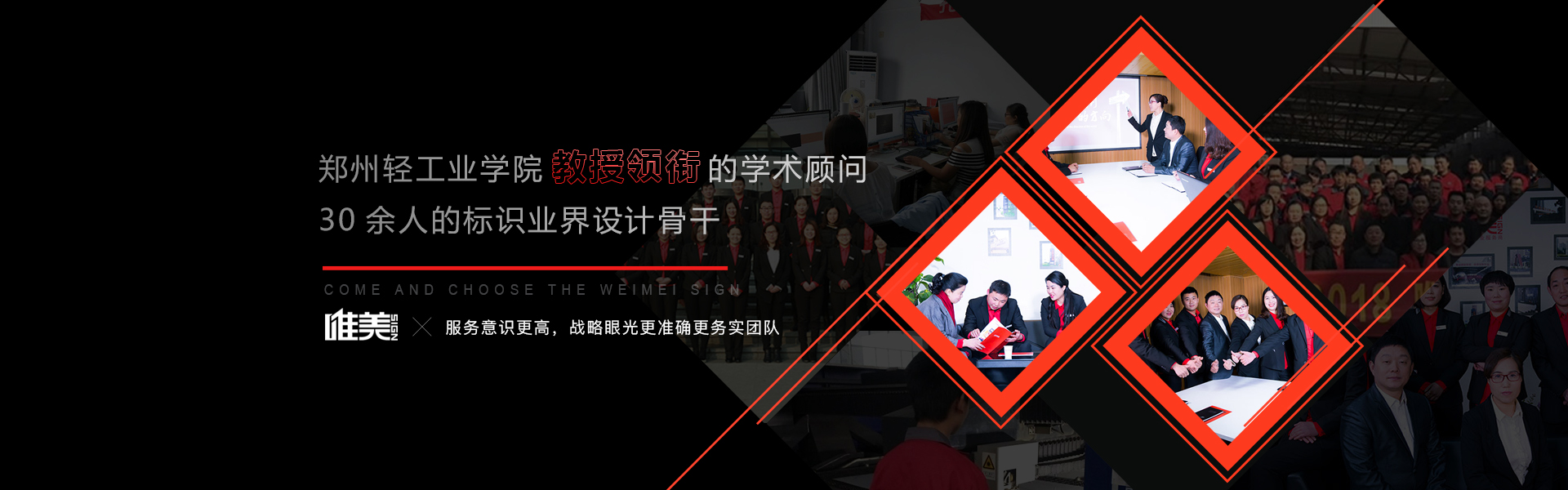 鄭州唯美標識設計制作公司擁有21000平方現代化生產車間、多臺先進設備、100多名技工團隊、12位資深設計師團隊,嚴遵19道制作工序和6S管理體系,成功服務2800多個標識項目,3...